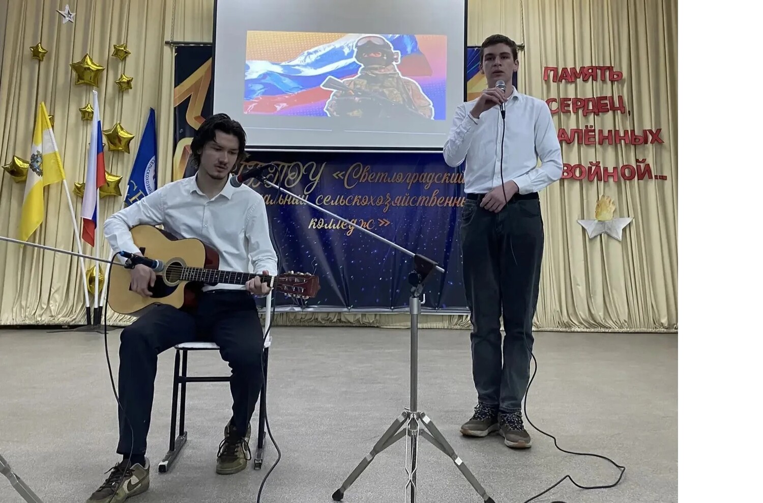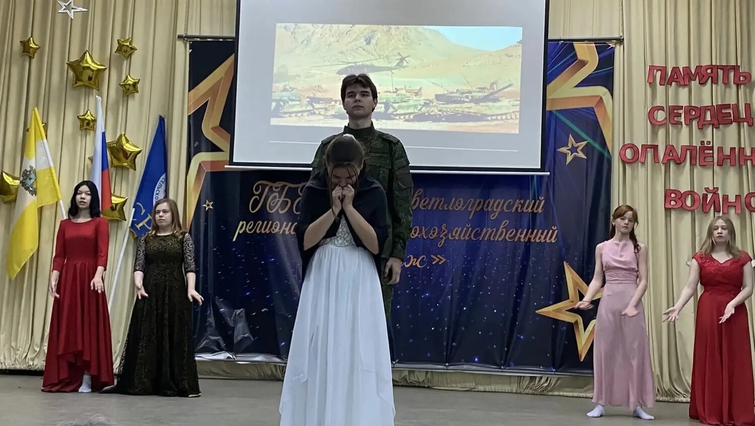 В зале прозвучали стихотворения на военную тему, танцевальная группа колледжа исполнила трогательный танец. Писаренко Даниил и Латышев Владислав исполнили песню под гитару. Завершением мероприятия стало возложение цветов к мемориалу на территории колледжа выпускникам, которые погибли в ходе Афганской войны.