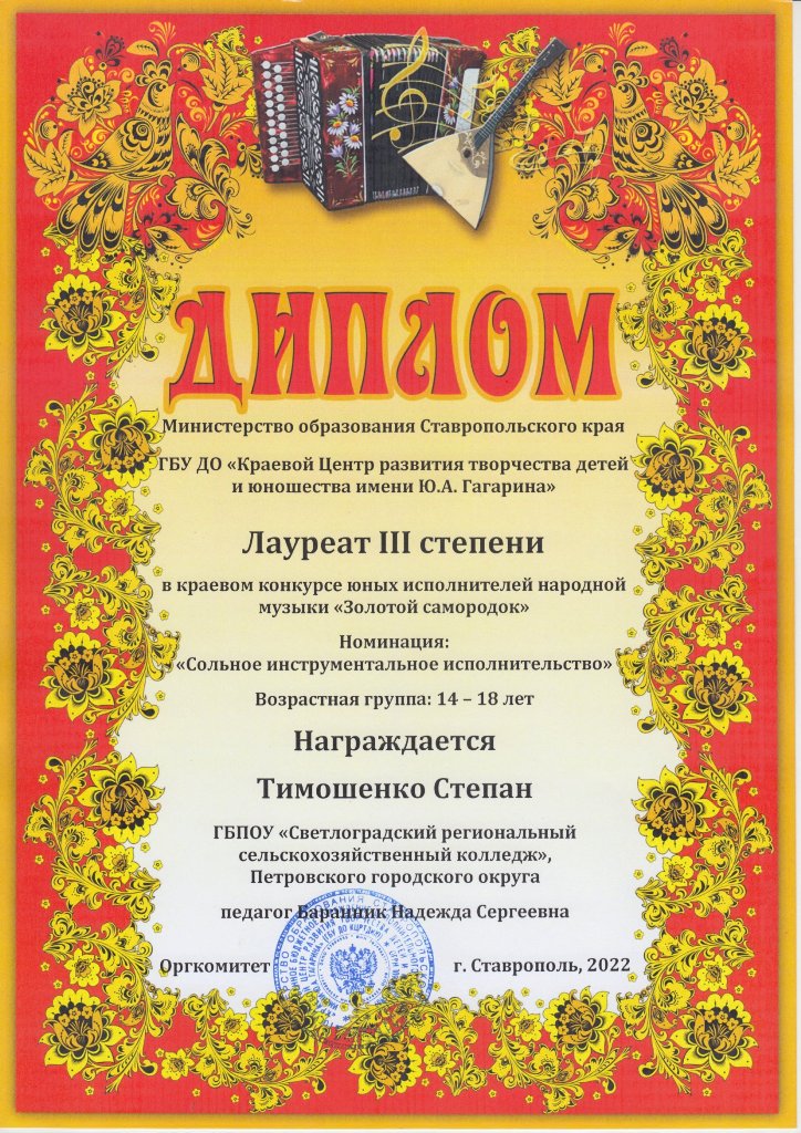 "Светлоградский региональный сельскохозяйственный колледж"